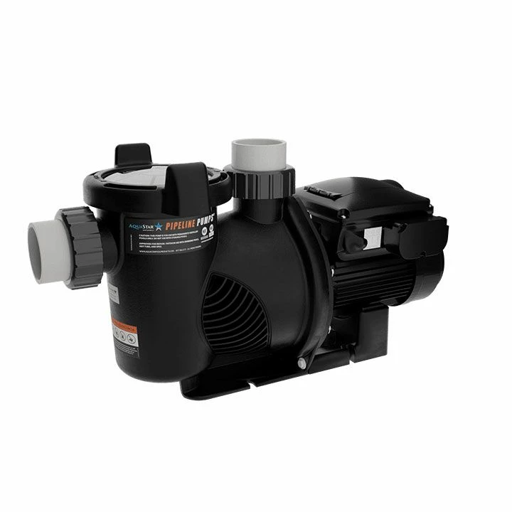 The Aquastar Pipeline pool pump has a special motor (Permanent magnet motor (PMM)) that uses magnets to work. It can be set to four different speeds, ranging from 800 to 3400 revolutions per minute. It fits standard PVC pipes that are 2 inches to 2.5 inches in diameter. The pump’s lid is easy to use and can be opened and closed with just a quarter turn. The Pipline pump also has a large capacity durable debris basket.