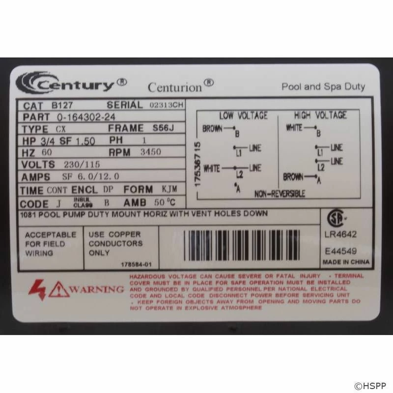 It is important to know that pool pump motors are not manufactured by the pump manufacturer; the motor will usually be manufactured by AO Smith, Magnetek or Centurion. Your pump’s motor should have a label or faceplate on it which includes the information you need to replace your pump motor. The most important categories to note will be the horsepower (hp), motor frame (fr), voltage and service factor (sf). Some labels will provide you with a model number and it will usually be listed as CR or CAT.