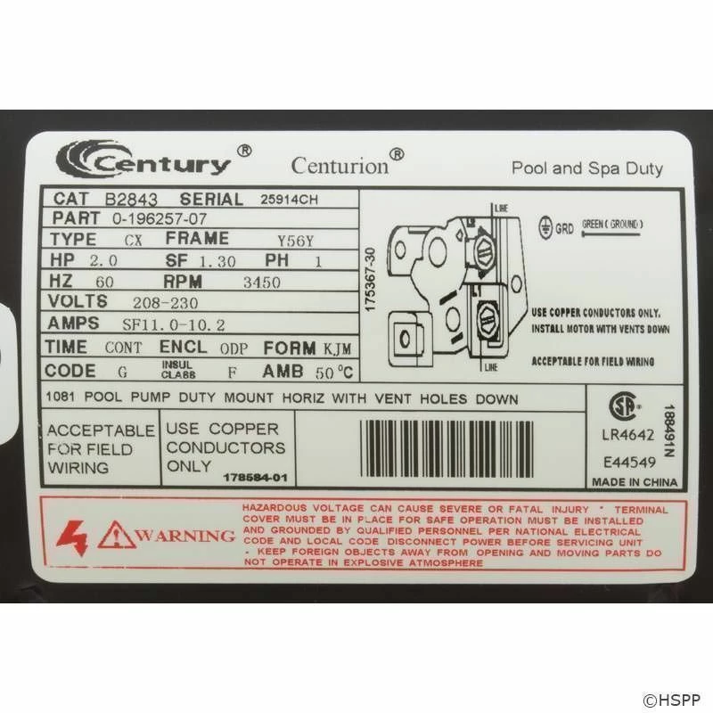 It is important to know that pool pump motors are not manufactured by the pump manufacturer; the motor will usually be manufactured by AO Smith, Magnetek or Centurion. Your pump’s motor should have a label or faceplate on it which includes the information you need to replace your pump motor. The most important categories to note will be the horsepower (hp), motor frame (fr), voltage and service factor (sf). Some labels will provide you with a model number and it will usually be listed as CR or CAT.