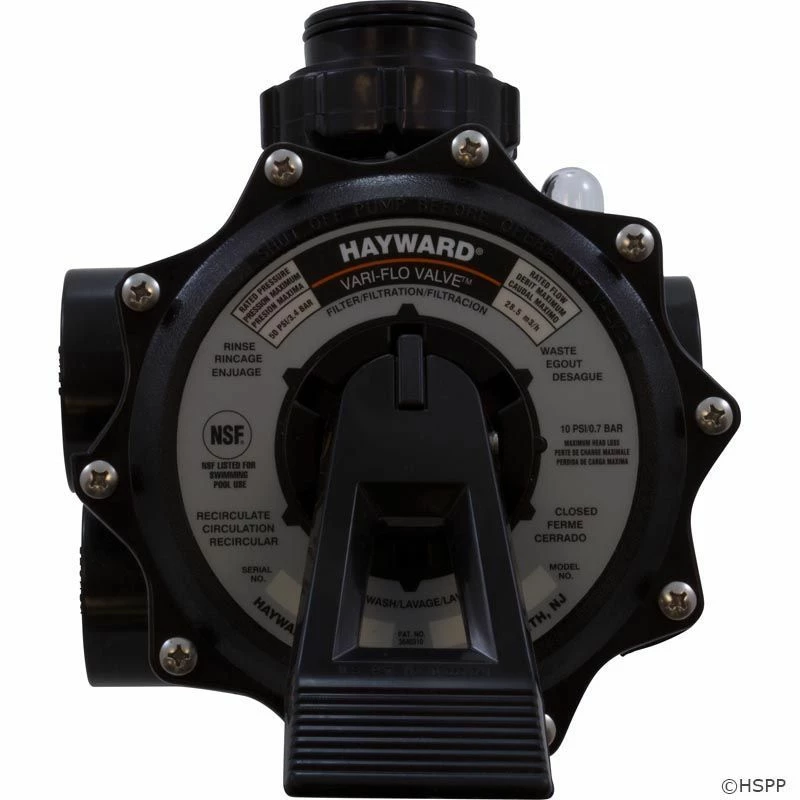 The Hayward SP0715X62 6 position replacement Side Mount Multiport Valve has 2 inch plumbing fittings and is made for Hayward Pro Series Sand Filters. This Vari-Flo multiport control valve is engineered for maximum flow at lower pressure drops and has an easy-to-use lever action handle that lets you dial up to six valve/filter functions: filter, backwash, waste, rinse, closed or recirculate.