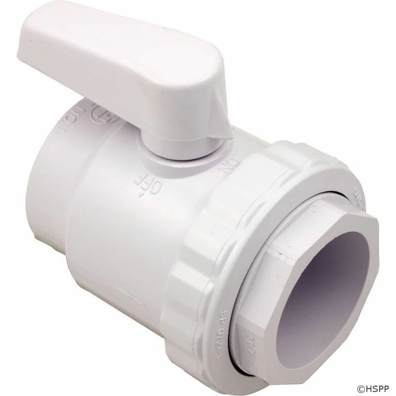 Hayward SP0724S 2 Inch Slip 2-Way Ball Valves include a union fitting on one end and are designed for maximum flow efficiencies and pressure ratings up to 50 psi. They feature a dial handle for easy flow regulation and visual indication of valve setting. Teflon seats and union end connectors accurately align the ball and provide a dependable sealing surface.