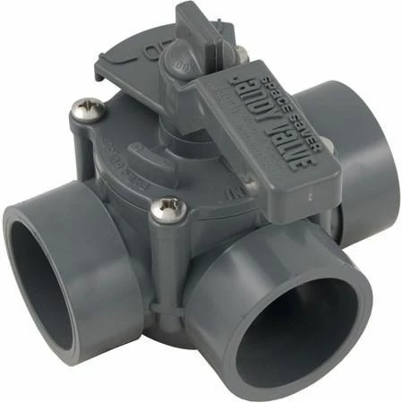 The Jandy 3-Way Positive Seal Space Saver Valve fits 1.5 Inch pipe or 2 Inch fittings.