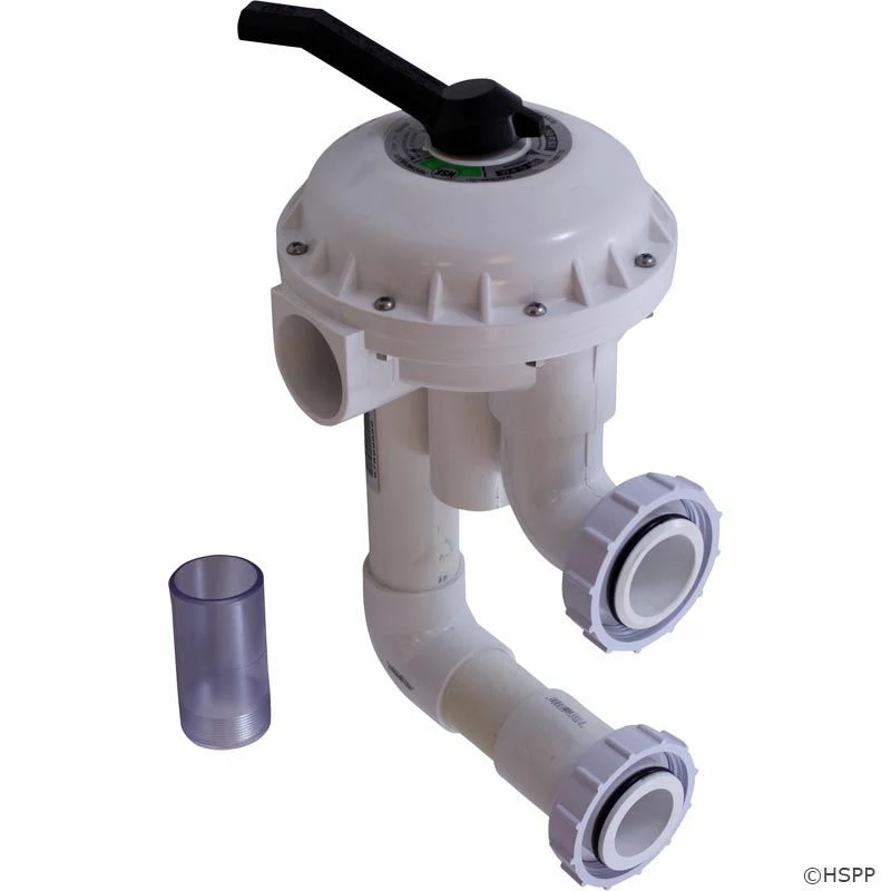 The Pentair 261050 Hi-Flow Side Mount Multiport Valve works with Pentair sand filters with 2 inch ports. This valve is pre-plumbed for sand filters and designed for maximum working pressures and performance. The large one piece handle makes operation simple and the 2 inch PVC slip ports make installation easy. The high efficiency center intake diverter is heavy duty and made of glass filled Noryl thermoplastic for added strength and heat resistance. The valve features positive lock, six position operation including a special winterizing position.