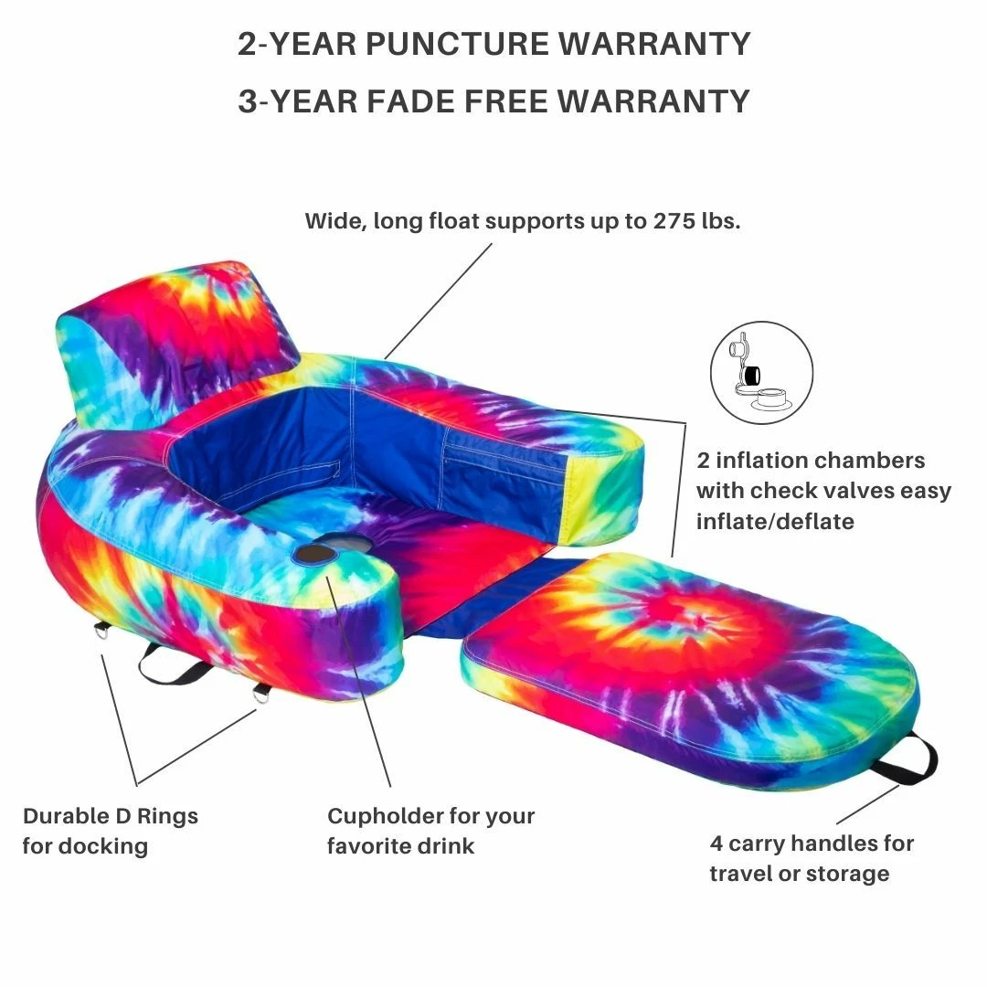 Our float features two air chambers with oversized check valves, making inflation and deflation a breeze. Plus, with its convertible design, you can easily flip the footrest over to transform the lounger into a chair.