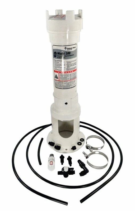 Rainbow Automatic Chemical Feeders by Pentair are high capacity feeders and provide one of the easiest ways to sanitize large residential and commercial swimming pools using either chlorine or bromine tablets or sticks. The Rainbow #300 Off-Line Automatic Chlorinator is a swimming pool chemical feeder designed to hold 11 large chlorine tabs or 98 small 1 inch chlorine or bromine tablets.